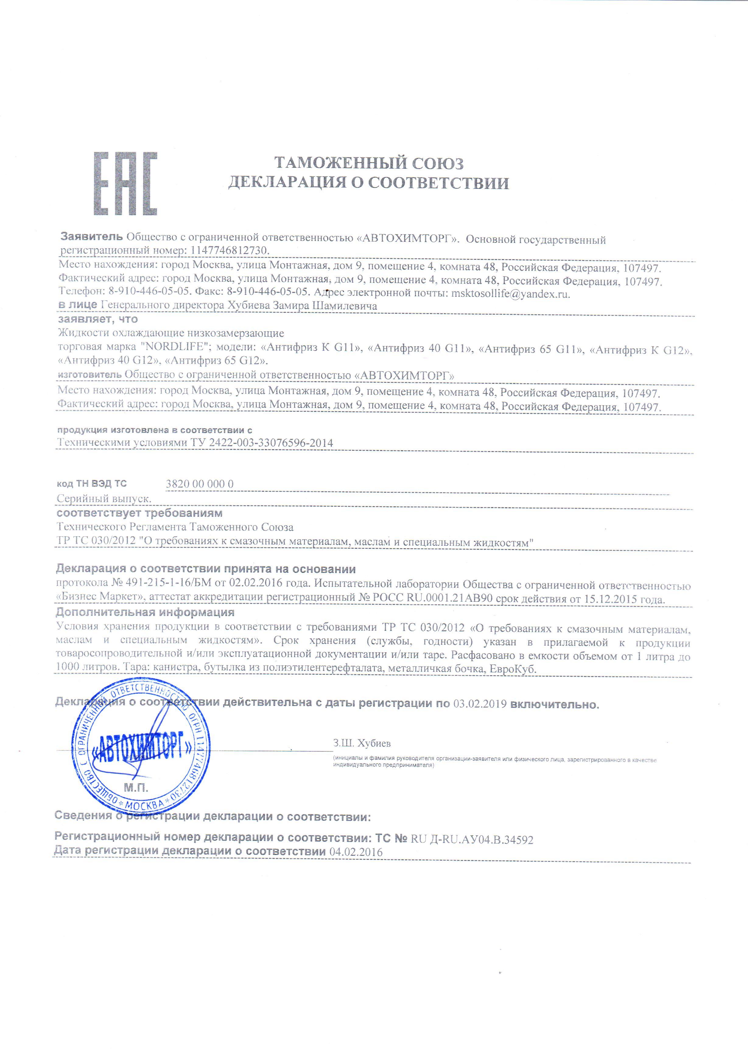 Этиленгликоль, с содержанием обессоленной (фильтрованной) воды – не более 5%, содержащий антикоррозионные, стабилизирующие, красящие и антипенные присадки. Дополнительно, он содержит добавки для минимизации высокотемпературных отложений, одновременно предотвращающих образование на теплопередающей поверхности масляной пленки.