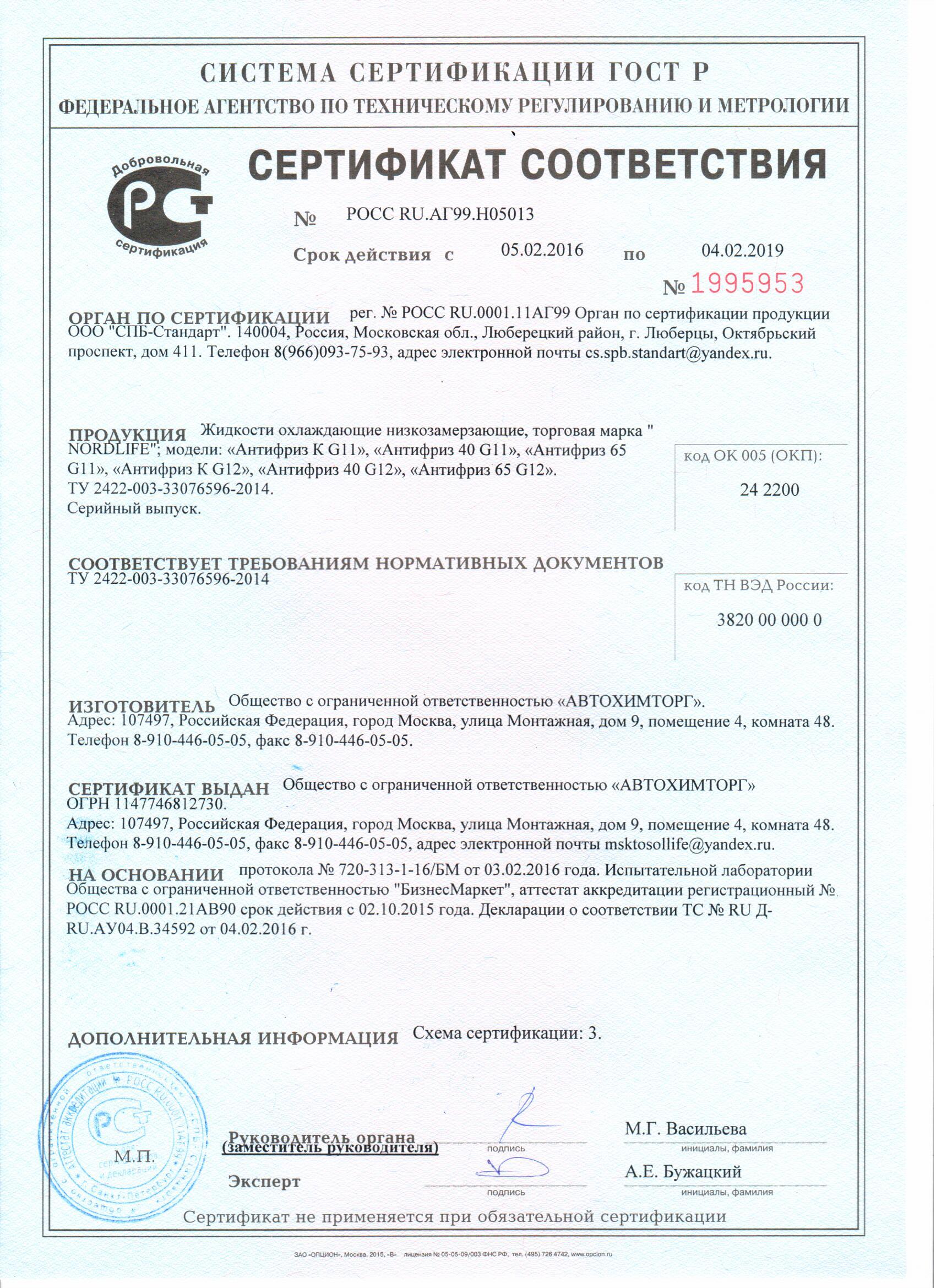 Продукция ООО "Русхимснаб" сертифицирована и обладает высоким качеством.